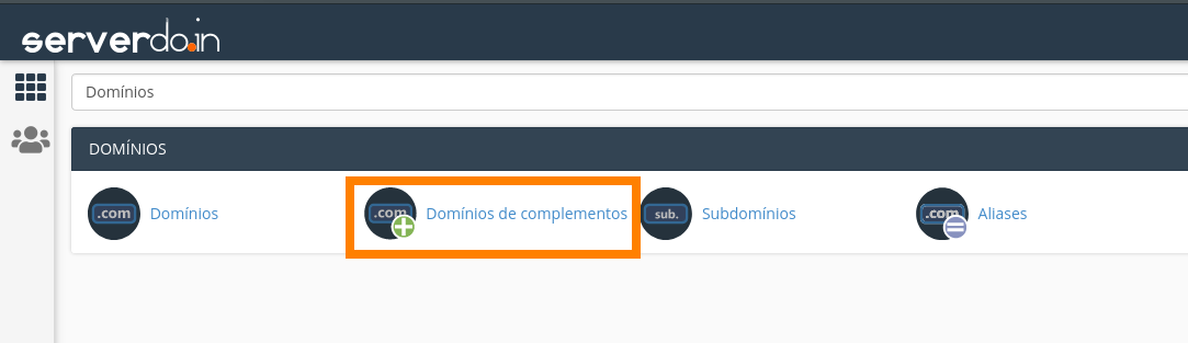 Acessando o seu cPanel, pesquise por "Domínios" e clique na aba "Domínios de complementos":