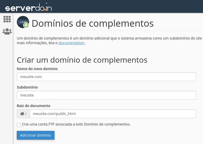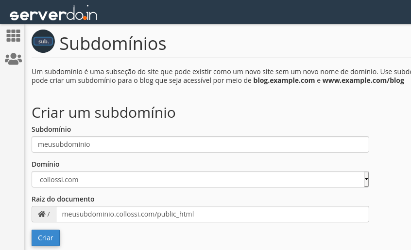 Adicionando um subdomínio