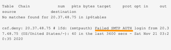 Nesse caso o endereço IP estava tentando enviar e-mails através do login pelo protocolo SMTP, utilizando login e senha inválidos. Por segurança, todo o endereço de IP de onde partiram essas tentivas foi bloqueado.