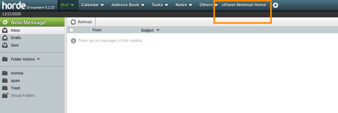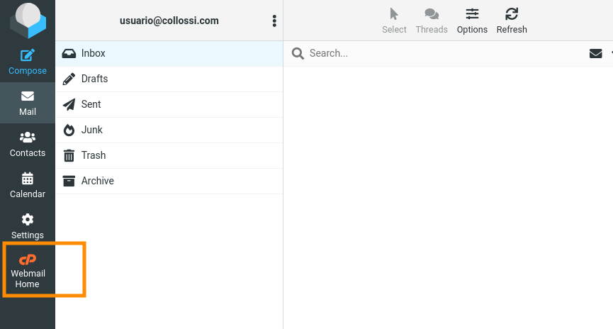 5. Caso deseje trocar para Horde vá em "Webmail Home"