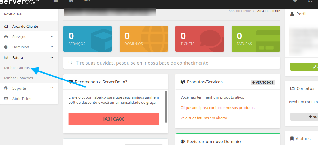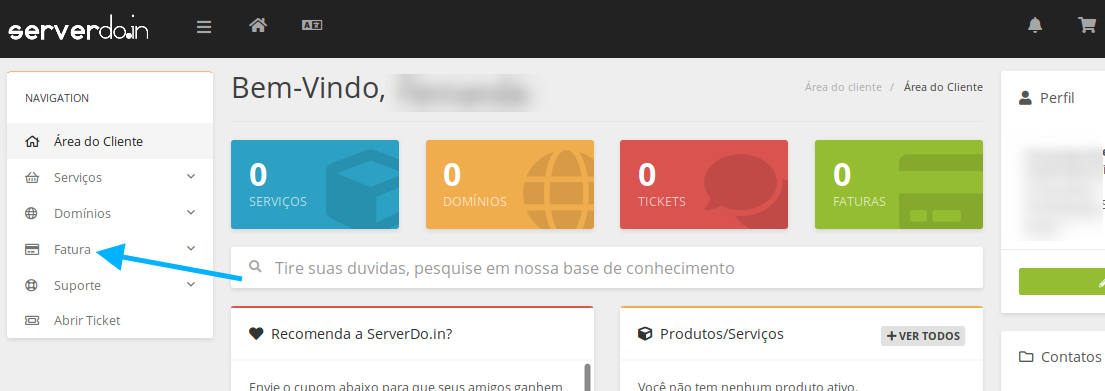 2.  Na Àrea do Cliente, no menu lateral, clique em Fatura