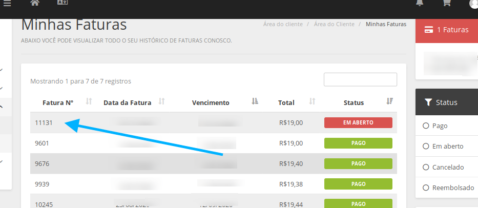 4. Selecione a Fatura que deseja realizar o Pagamento
