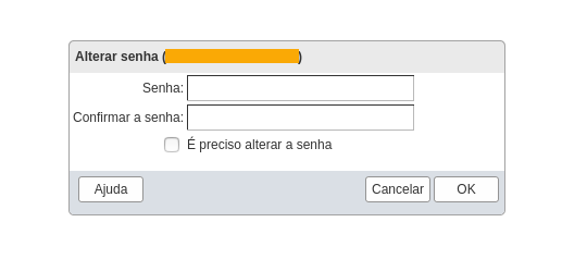 3. Na janela que abrir, digite a nova senha e caso queira que o usuário altere no primeiro login, deixe a caixa "É preciso alterar a senha" marcada.