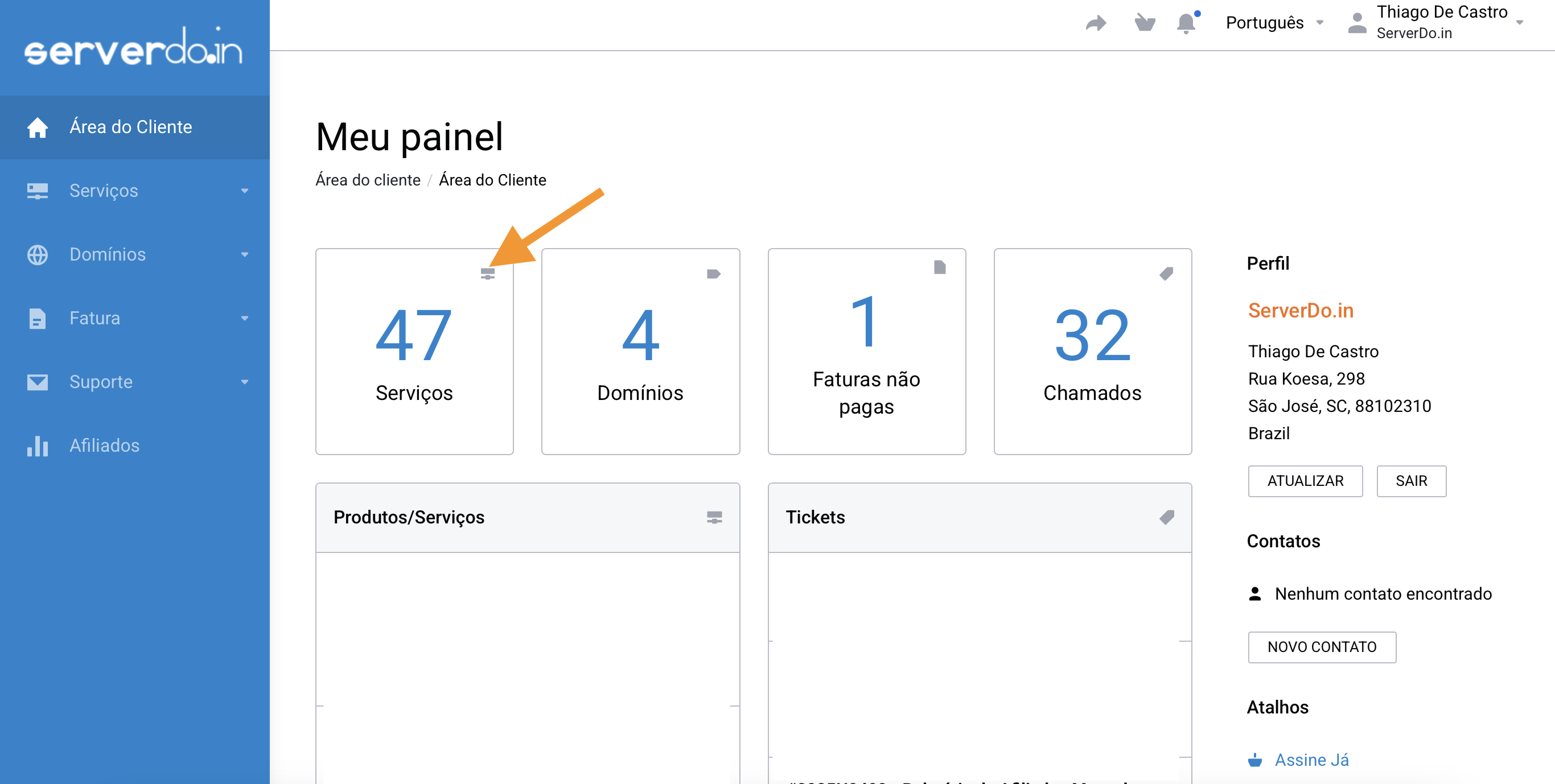 “Serviços > Meus Serviços”